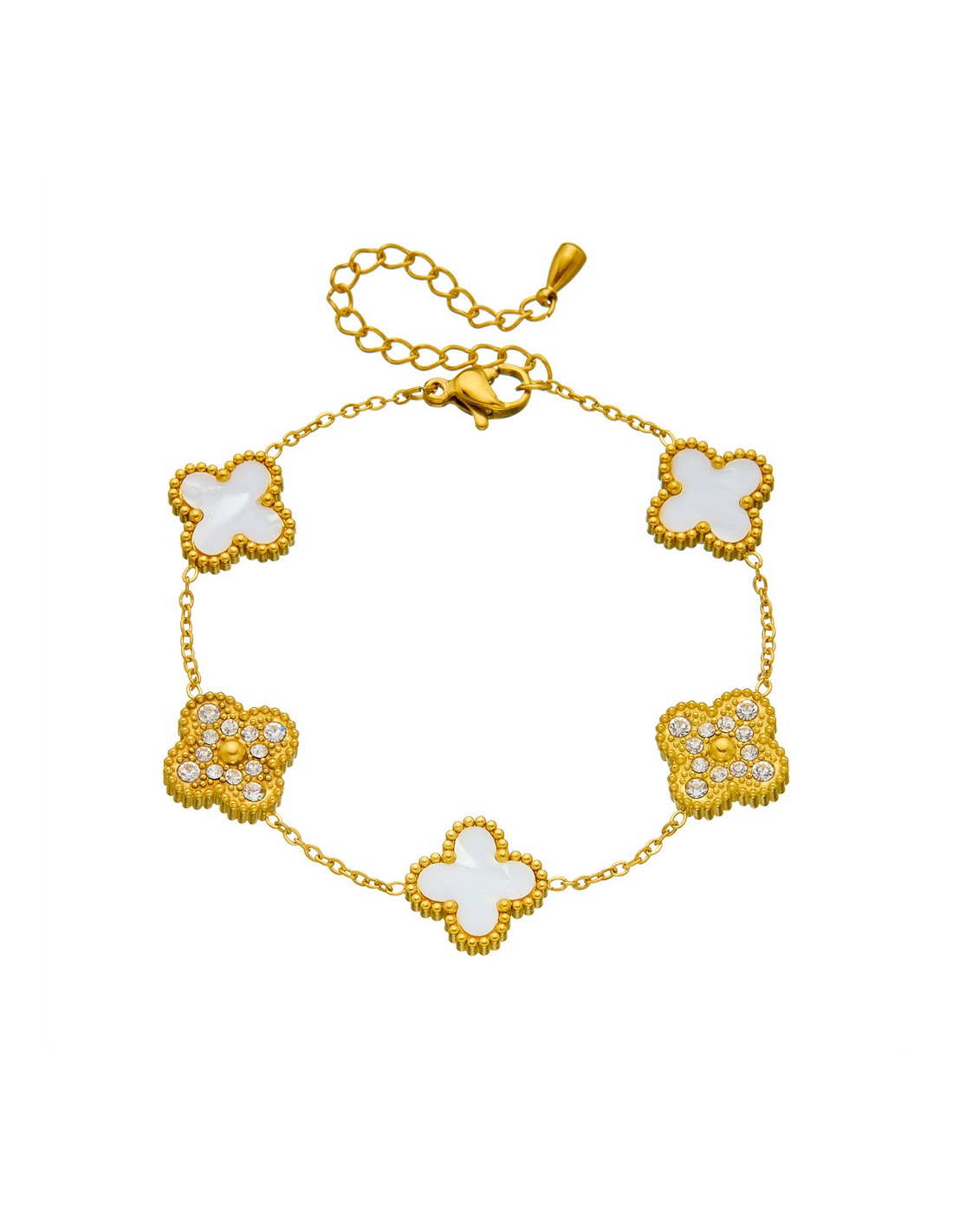 Pulsera Trébol Acero Circonita 16+ 5cm