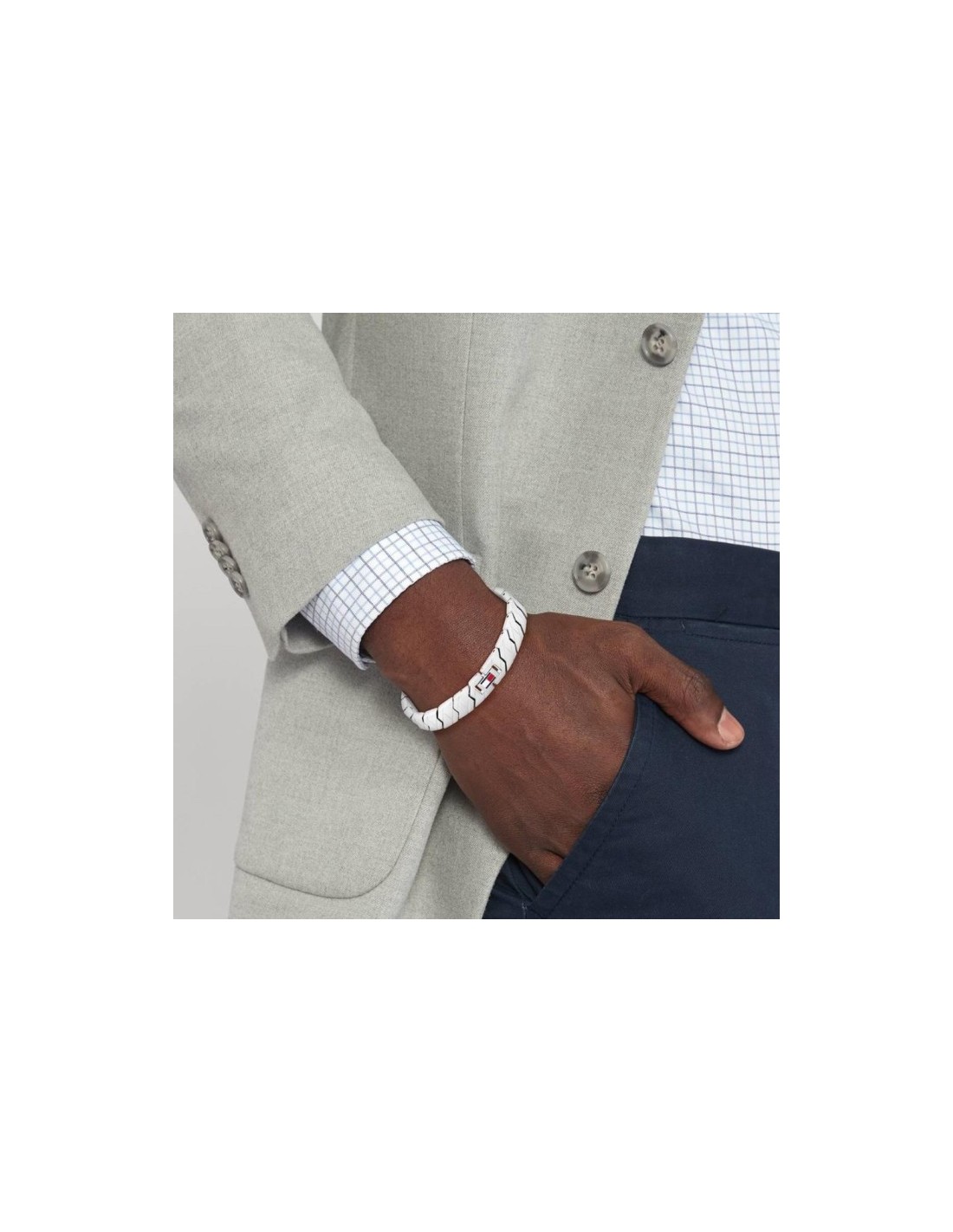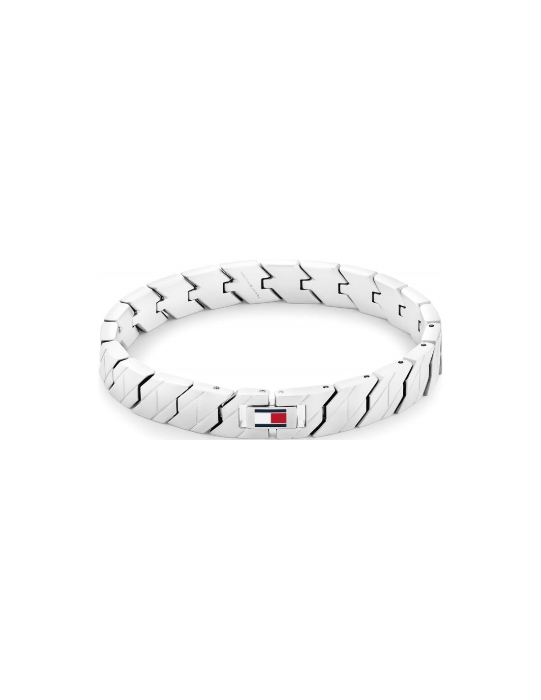 Pulsera Tommy Hilfiger para hombre fabricada en acero inoxidable en color plateado compuesta de medida ajustable debido a sus eslabones extraíbles. Su cierre es desplegable mediante botón.