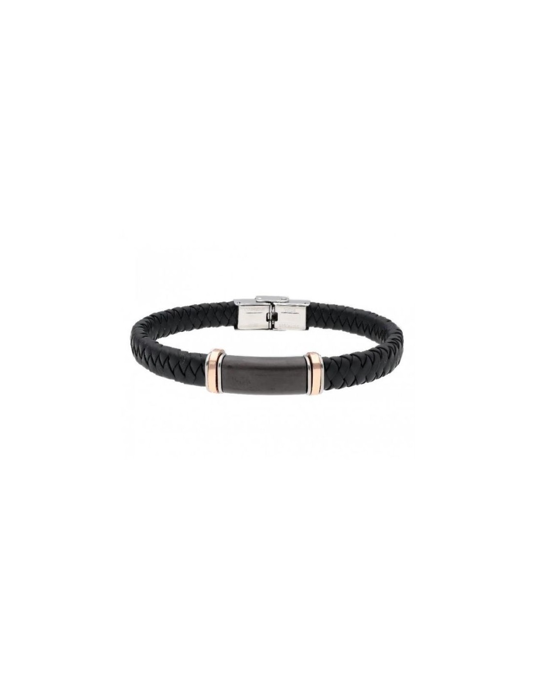 PULSERA caucho Y ACERO NEGRO bicolor