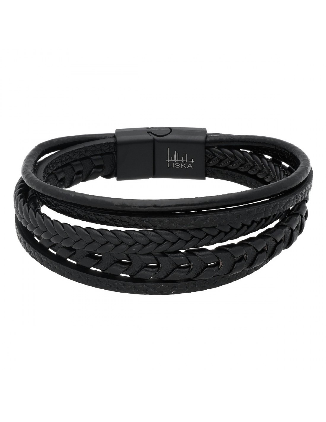 Pulsera piel y acero NEGRA