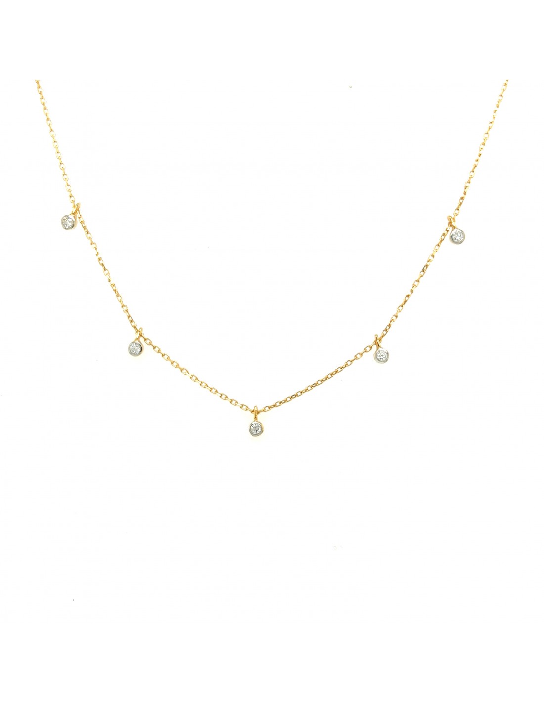 ct-0.04 GARGANTILLA 5 PUNTOS DIAMANTES ORO DE 18K