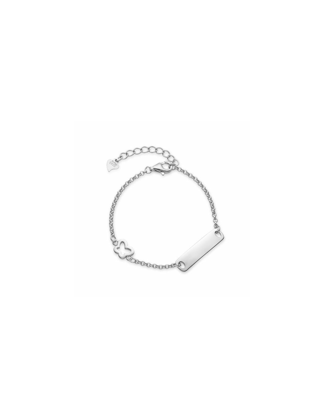 Pulsera de plata para bebé con mariposa y placa personalizable
