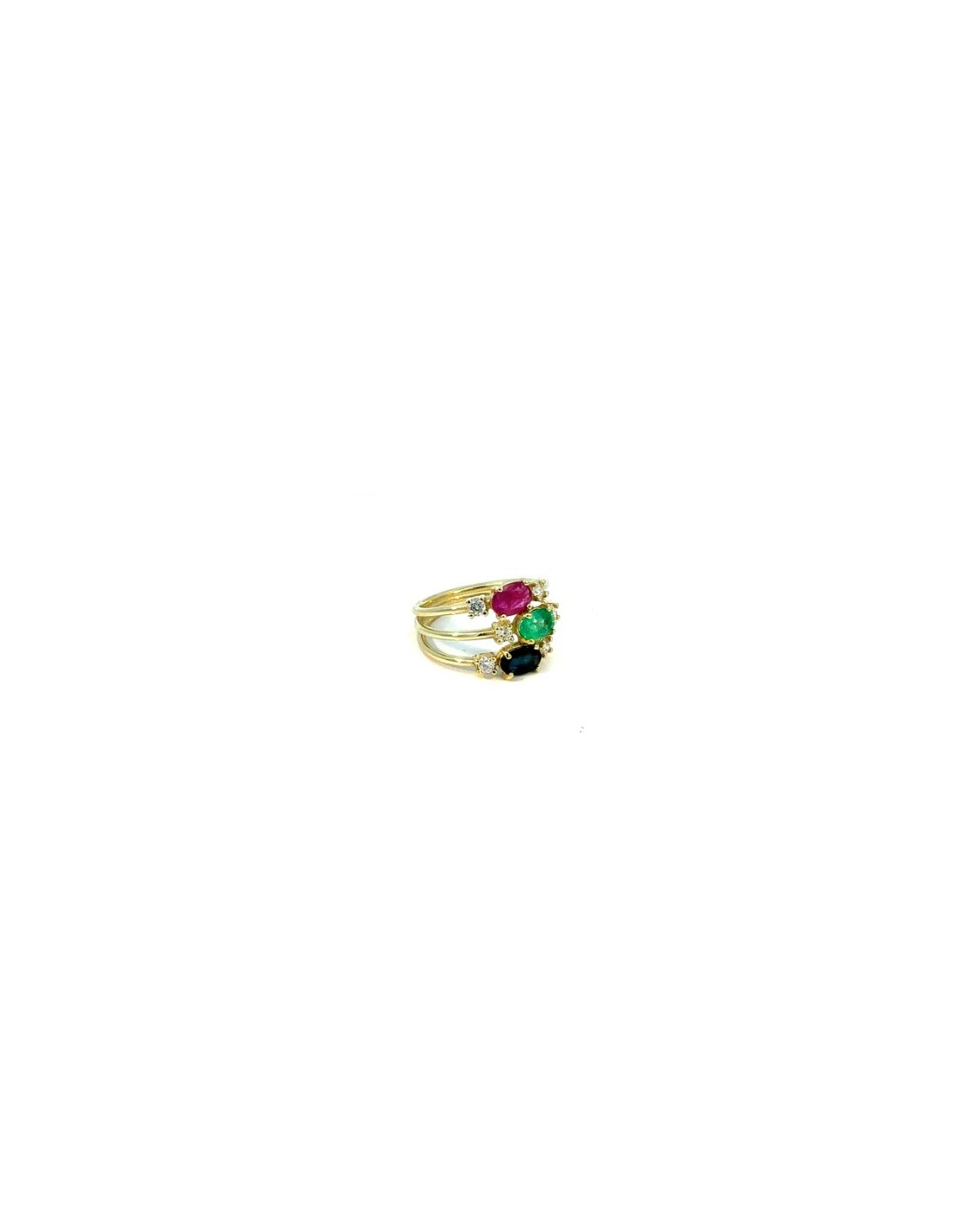 Anillo del conjunto TRI-COLOR fabricado en oro amarillo de 9 quilates y engastado con el siguiente juego de piedras preciosas: