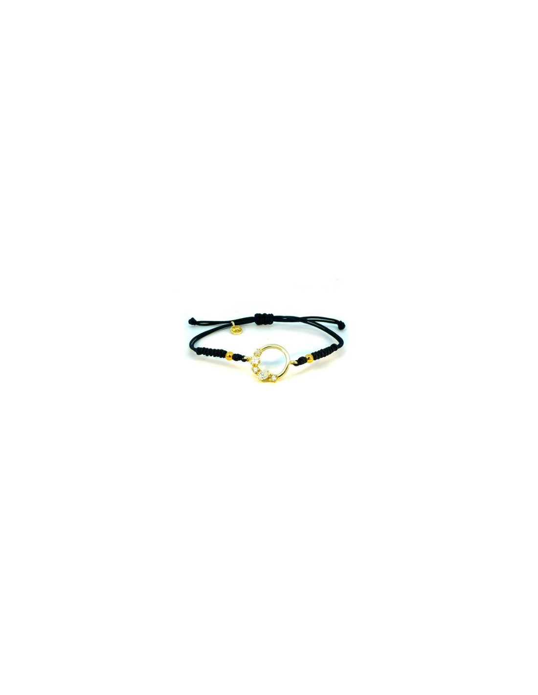 Pulsera del conjunto KAOS fabricada en oro amarillo de 9 quilates y macramé, engastada con un juego armónico de piedras preciosas: