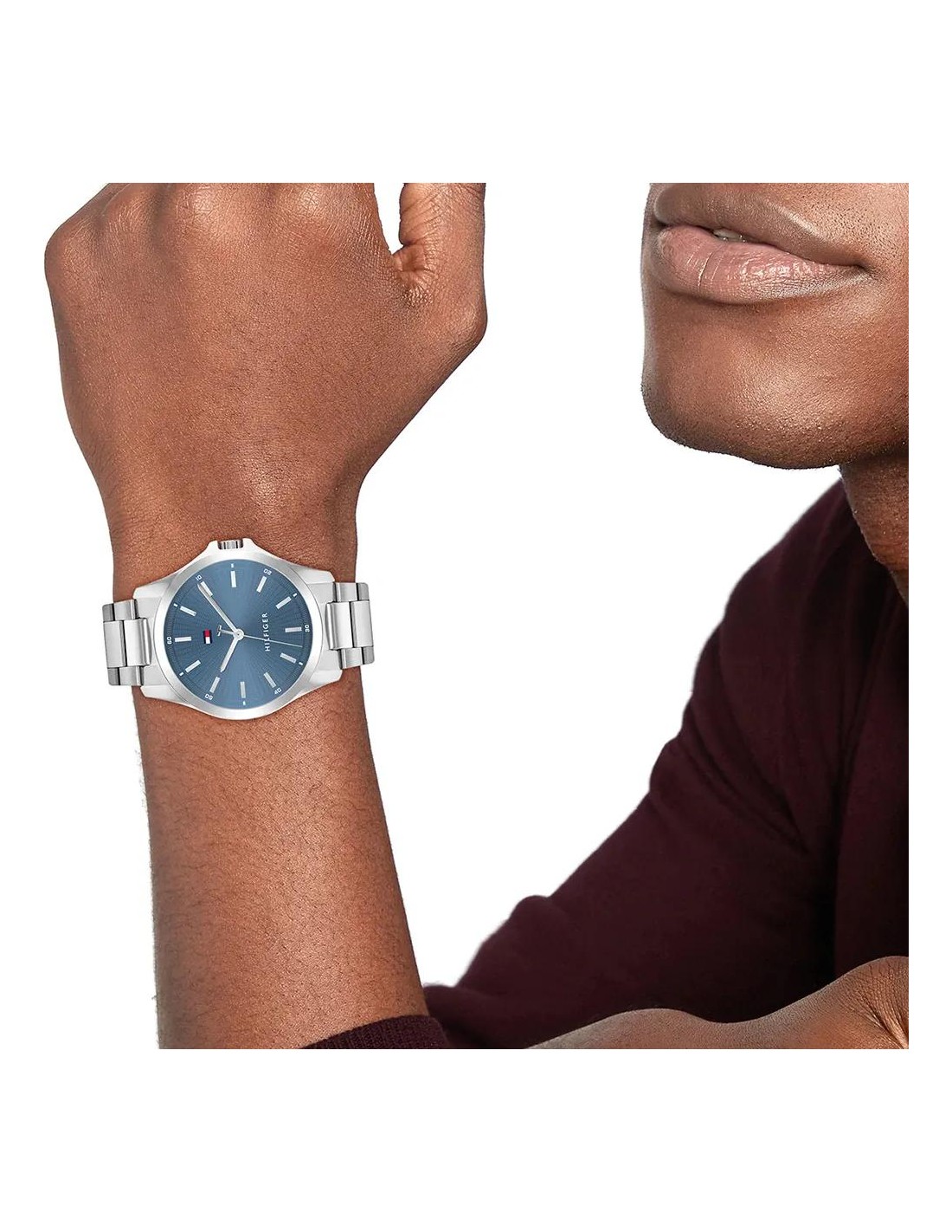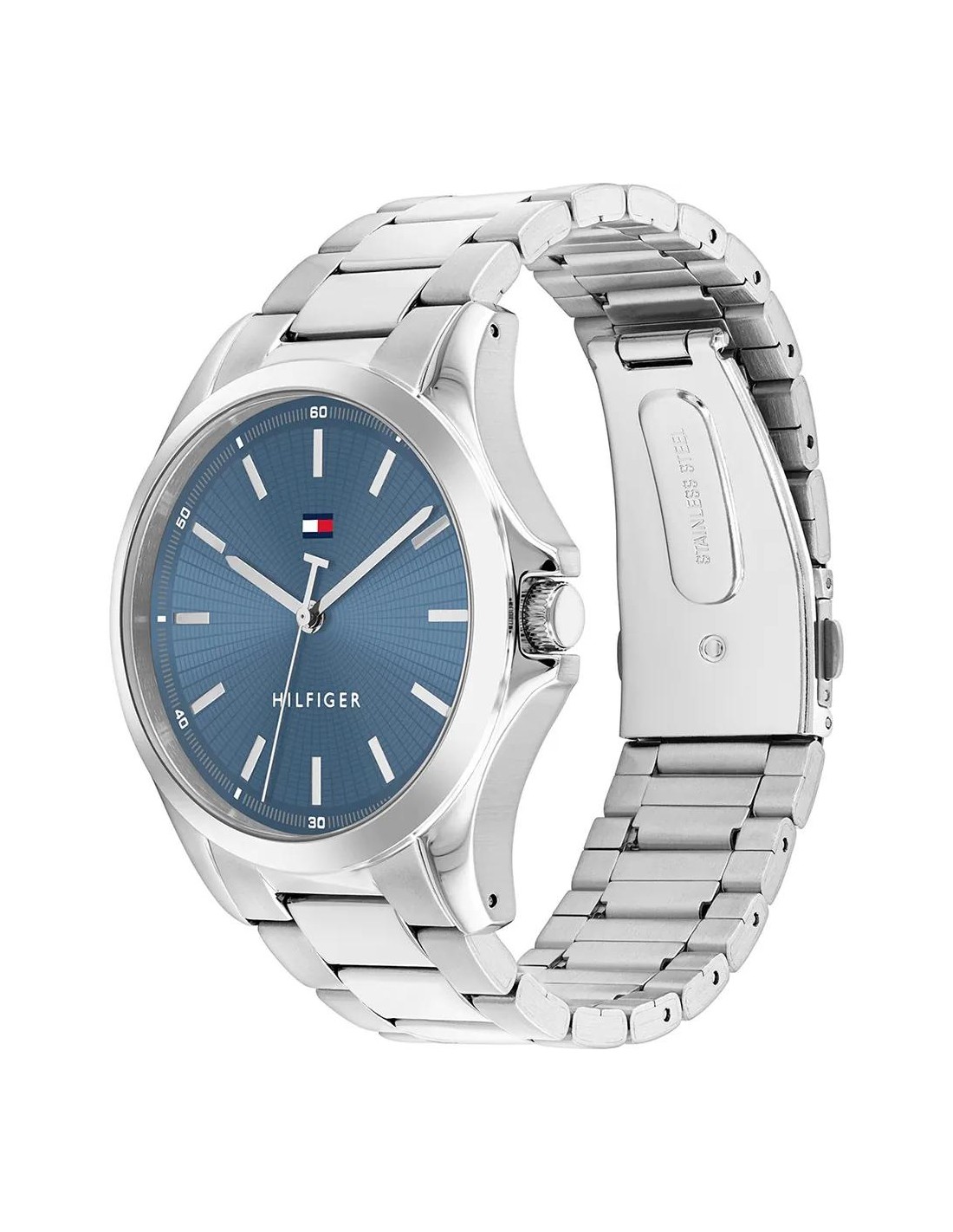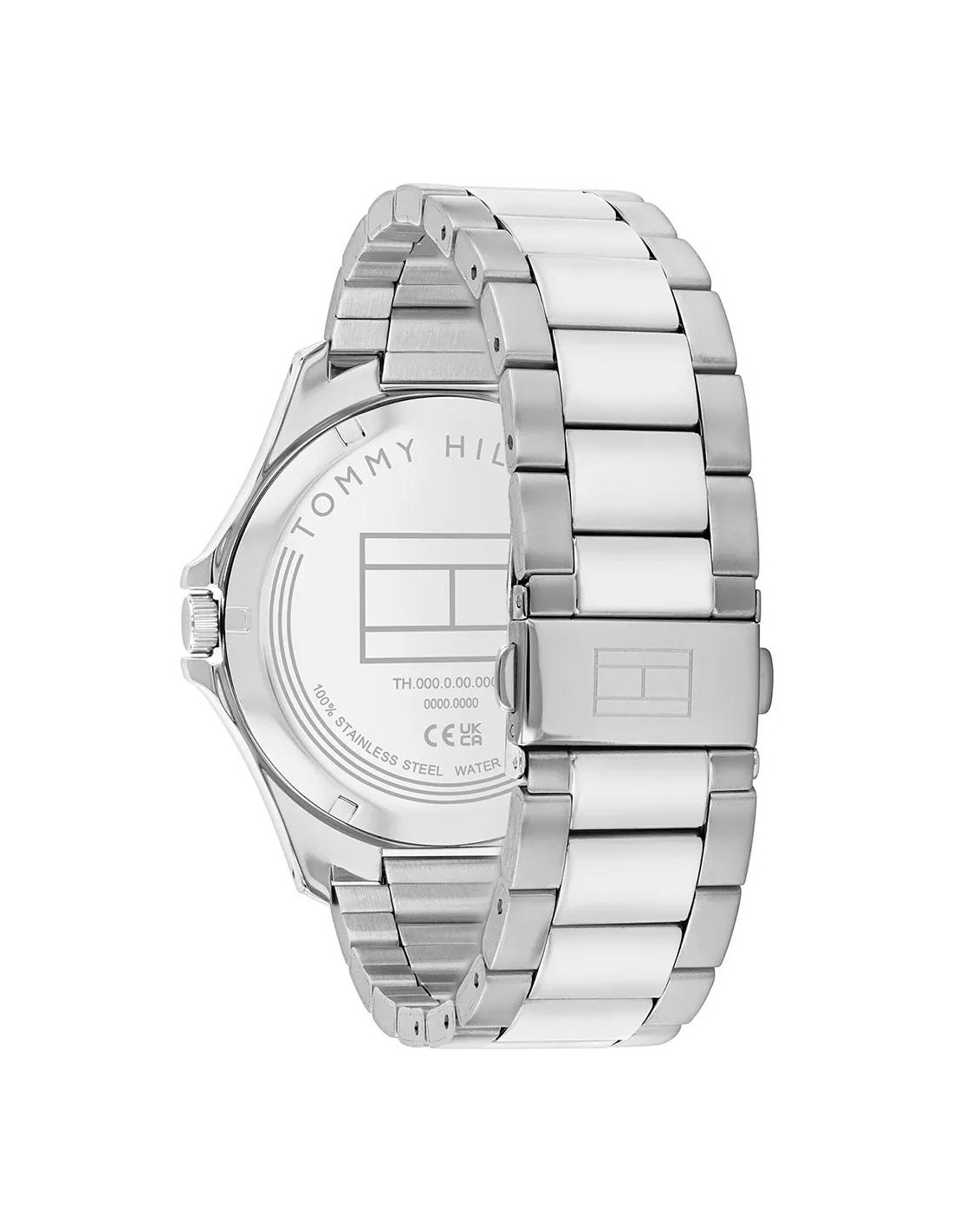 Este reloj marca Tommy Hilfiger tiene una caja de Inox con un diámetro de 43 mm y cuenta con una correa de metal. Dentro de la caja se encuentra un mecanismo de Seiko de alta calidad el cual esta protegido por un cristal Mineral.