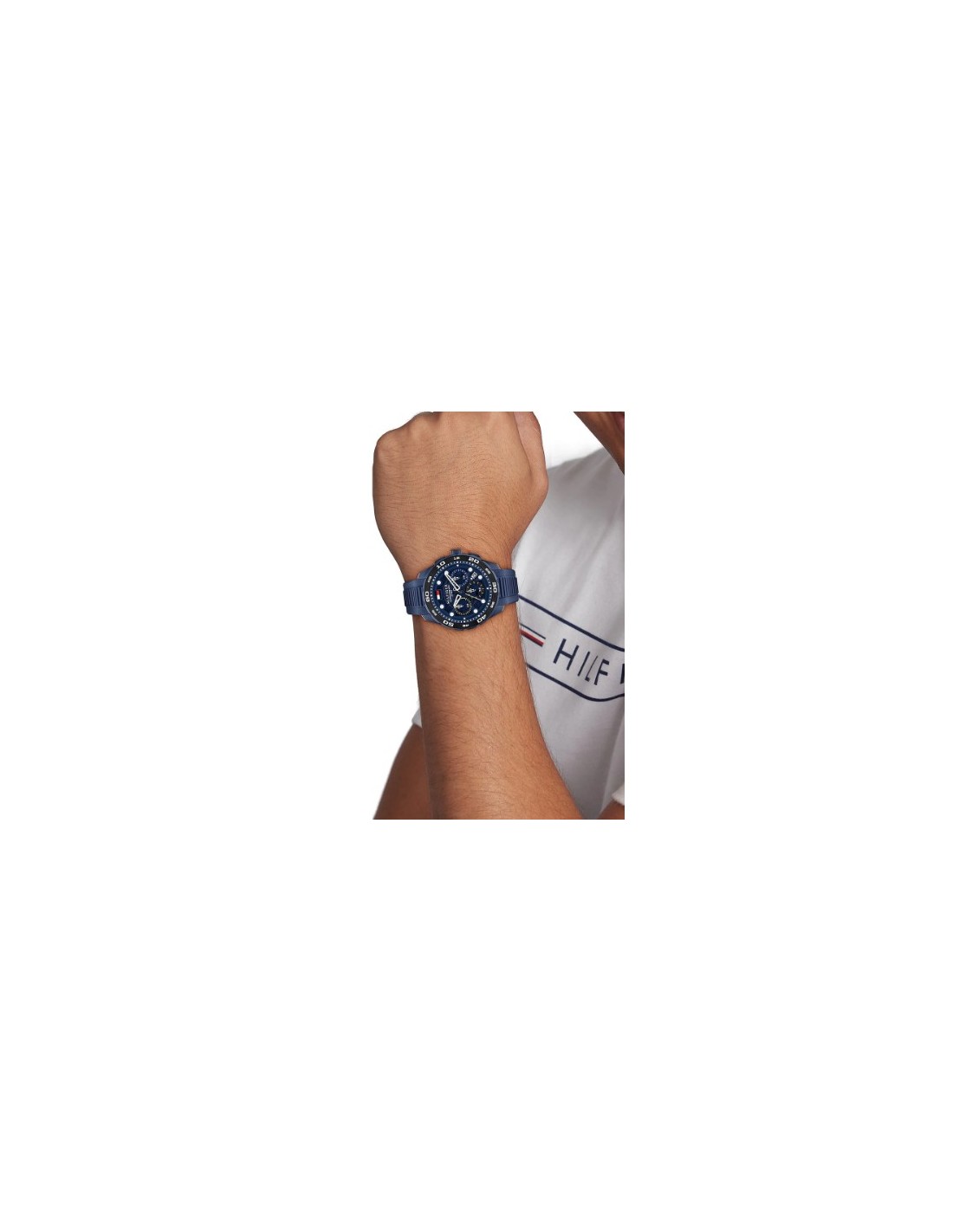 El reloj Tommy Hilfiger para hombre es un auténtico icono de la aventura y la precisión. Su caja de 44 mm, con esfera transparente dimensional, índices de puntos llamativos y bisel deportivo giratorio, está diseñada para la acción. El fondo de caja TH-Regatta personalizado y las correas de silicona en azul marino, blanco o negro dan vida al espíritu del mar, mientras que el movimiento de cronógrafo japonés garantiza que cada momento se capture con precisión.