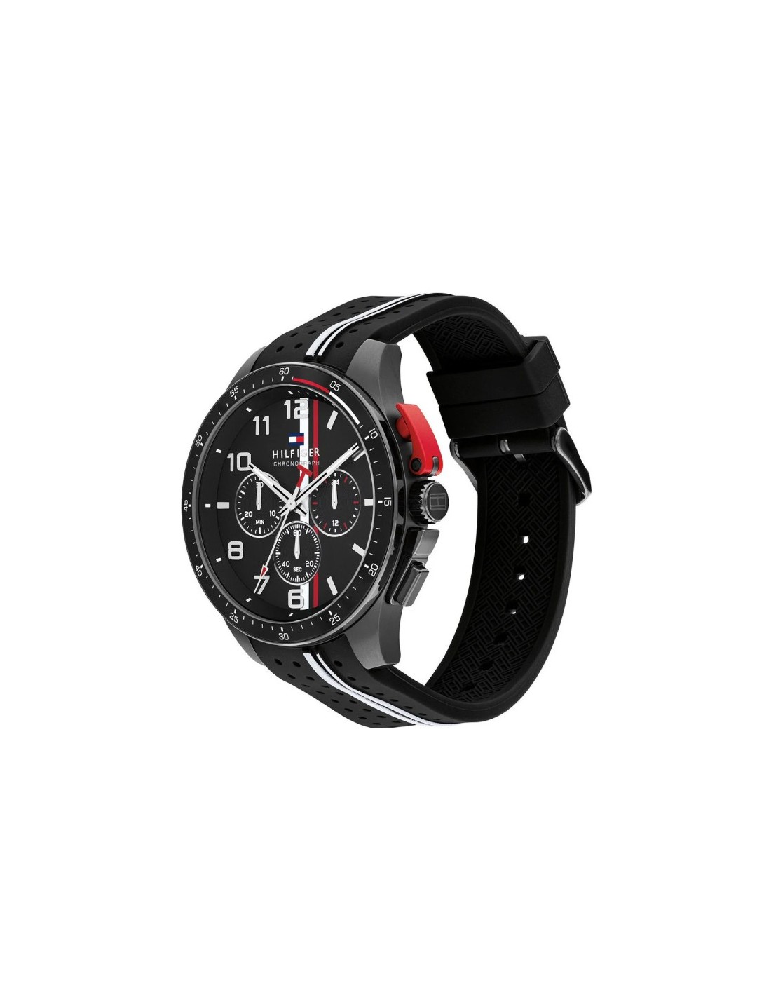 Este reloj cuenta con un preciso movimiento de cuarzo, una elegante esfera negra protegida por un cristal mineral de alta calidad y una resistente caja de acero inoxidable de 46 mm de diámetro. La correa de silicona negra de 21 mm de ancho garantiza un ajuste cómodo. Con este elegante reloj, siempre llegarás a tiempo con confianza.